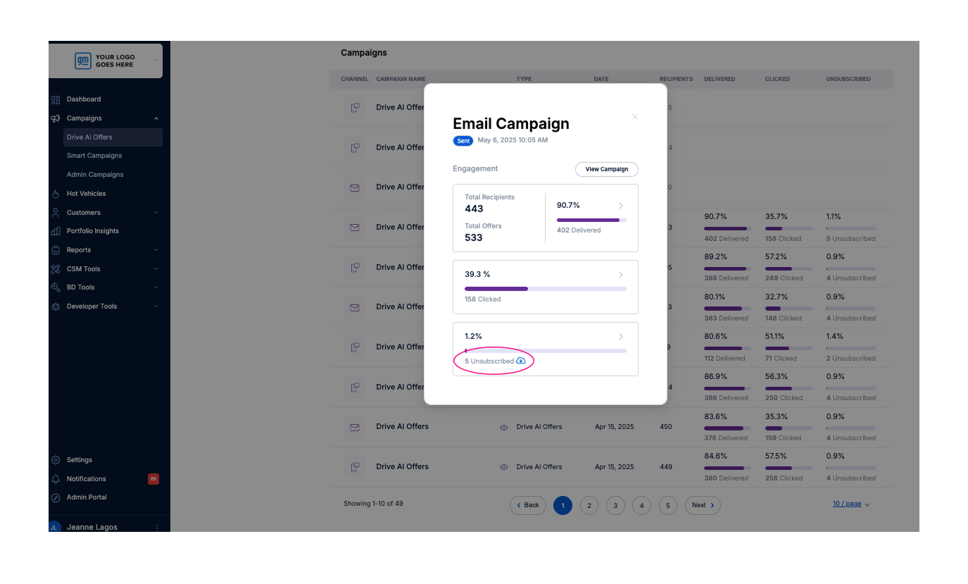 To download the unsubscribe list from Drive AI, follow these steps: