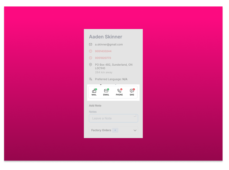 reached by SMS, phone, or email - this could be due to missing contact info or customer