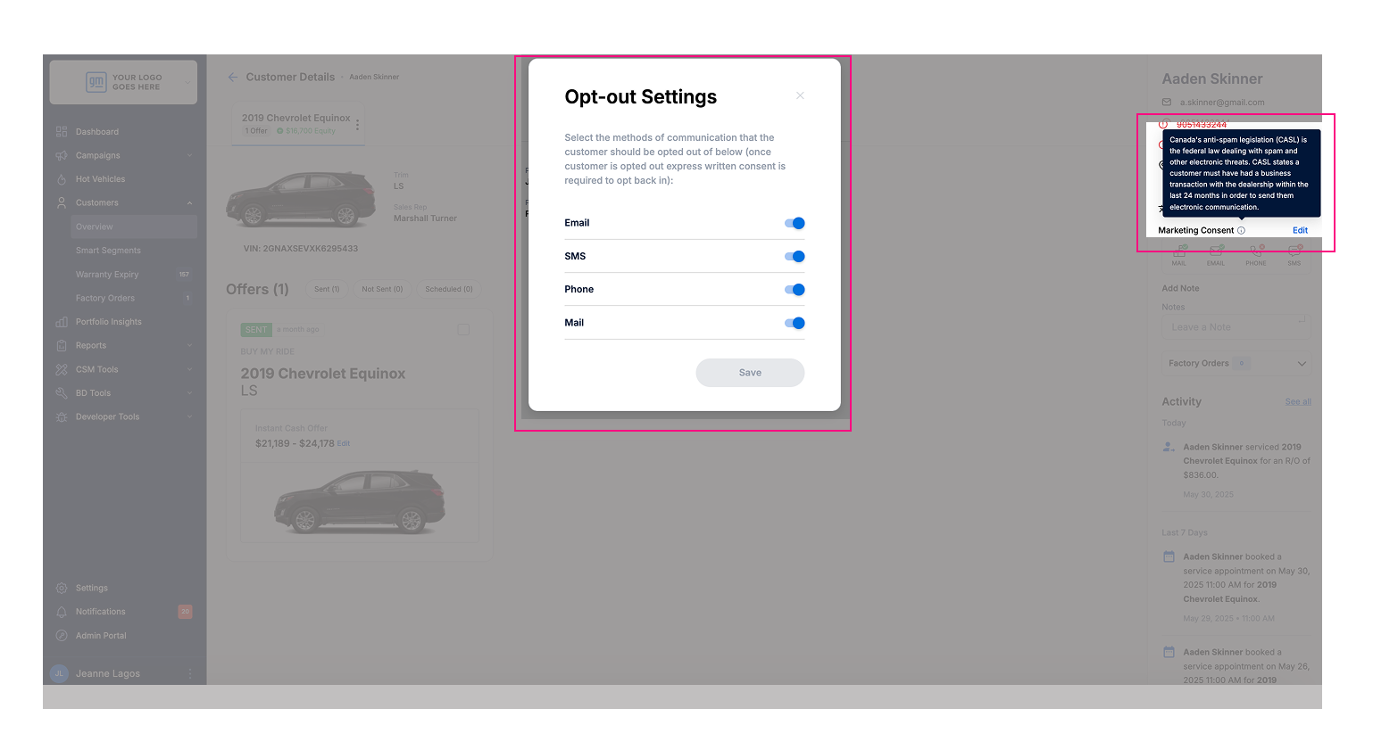 This lets you manually upload and manage a list of customers who should not receive email, SMS, or phone communications. It's especially useful if your Active Data Integration (your live connection to the DMS, CRM, or other systems) doesn’t include unsubscribe data.